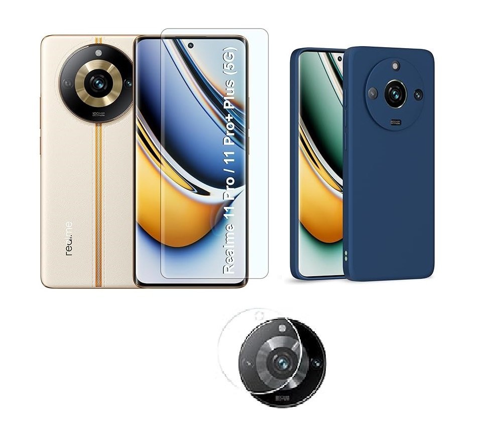 This 3-in-1 combo pack provides complete protection for your Realme 11 Pro 5G, covering the back, screen, and camera lenses with a unified style.