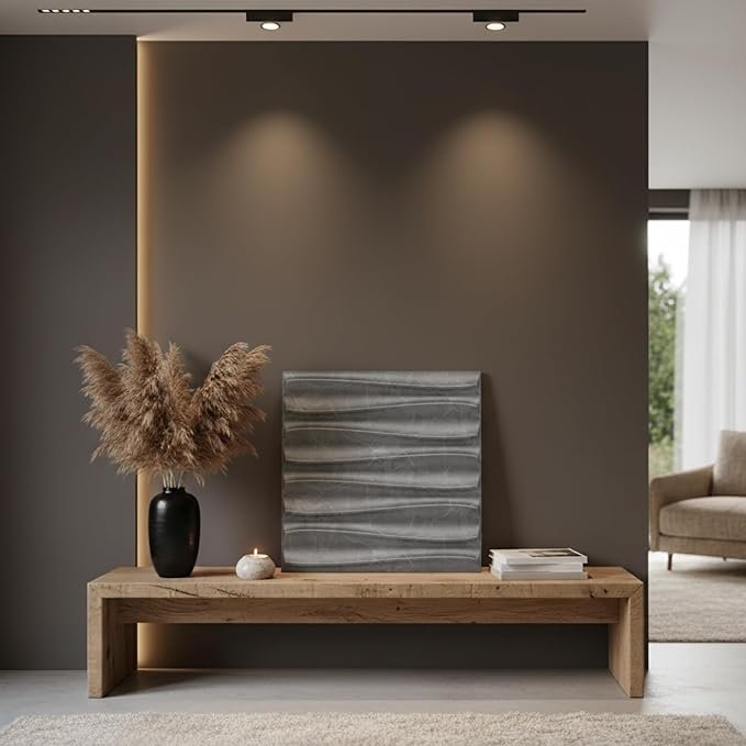 Natural Aesthetic: This panel provides the warmth and luxury of dark Grey Marble but with the 3D depth that traditional flat wood paneling lacks.