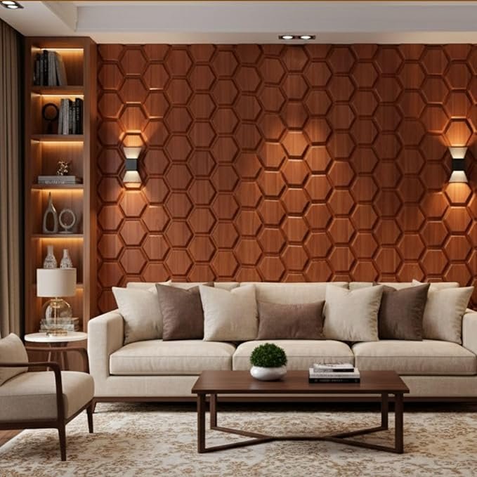 Sound Diffusion: While not a dedicated acoustic panel, the 3D hexagonal shapes help scatter sound waves, which can help reduce “flutter echo” in a large living room.
