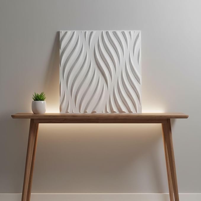 Dynamic Wave Aesthetic: The panels feature a flowing, 3D wave pattern that creates a “sculptural” look. When paired with directional lighting (like track lights or LED strips), the waves cast shadows that change throughout the day.