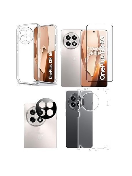 Keep your phone protected and stylish with the 4-in-1 Combo Pack for OnePlus 13R 5G – Transparent, exclusively available at OnMart India.