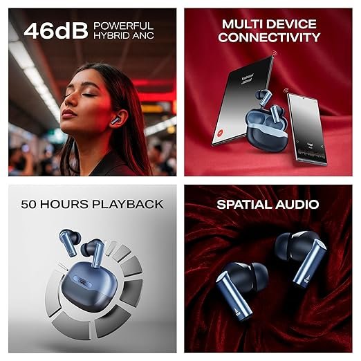 boAt Airdopes Prime 701 ANC (2025 Launch),46dB Hybrid ANC, 50Hr Battery, Real Spatial Audio,Multidevice Connect,App Support, Bluetooth Earbuds, TWS Ear Buds Wireless Earphones with mic (Blue)