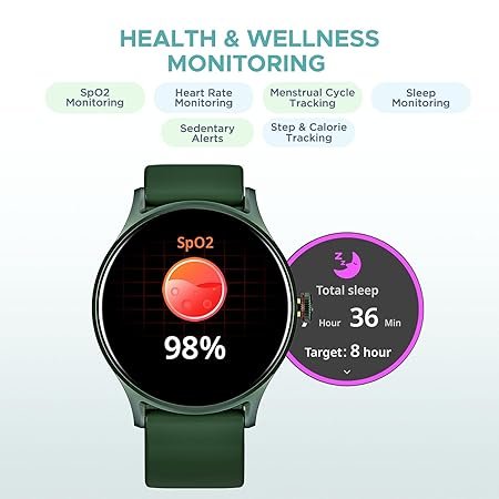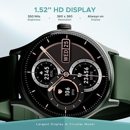 boAt Lunar Vista w/ 1.52″ (3.8 cm) HD Display, Advanced Bluetooth Calling, Functional Crown,100+ Sports Mode, Smart Watch for Men & Women (Green)