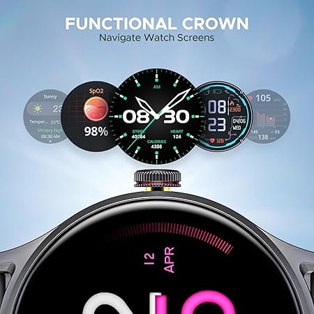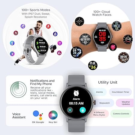 boAt Lunar Vista w/Large 1.52″ (3.8 cm) HD Always on Display,550 Nits Brightness, Functional Crown,100+ Sports Mode, Fitness Smart Watch for Men & Women(Cool Grey)