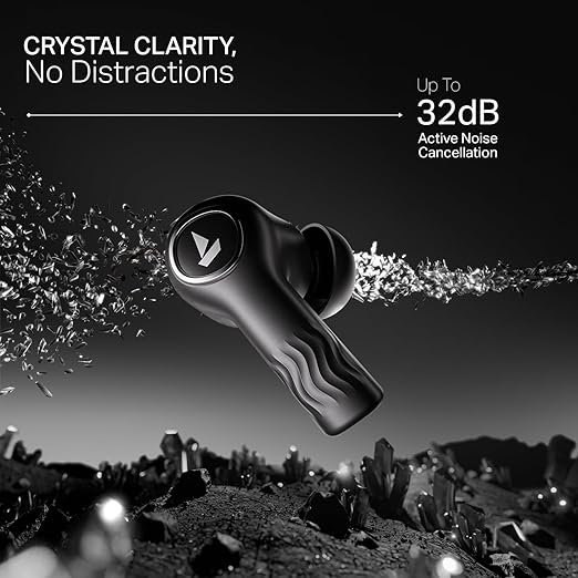 boAt Nirvana Crystl (2025 Launch), Transparent Case,Spatial Audio, ANC(~32dB), 100Hrs Battery,4Mics ENx,App Support, Bluetooth Earbuds, TWS Ear Buds Wireless Earphones with mic (Black)