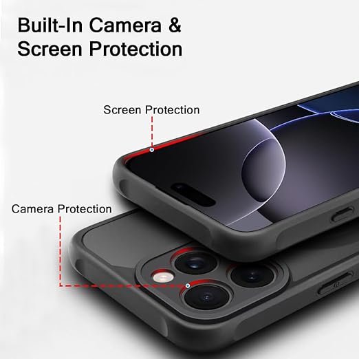 Rigid Polycarbonate Back: The hard PC back plate provides structural rigidity, preventing the larger 16 Pro Max from bending and protecting the glass from sharp objects.