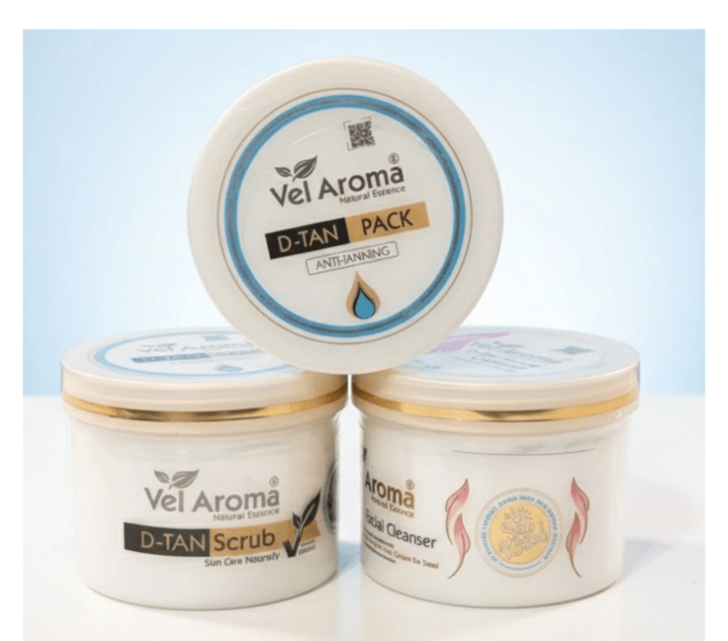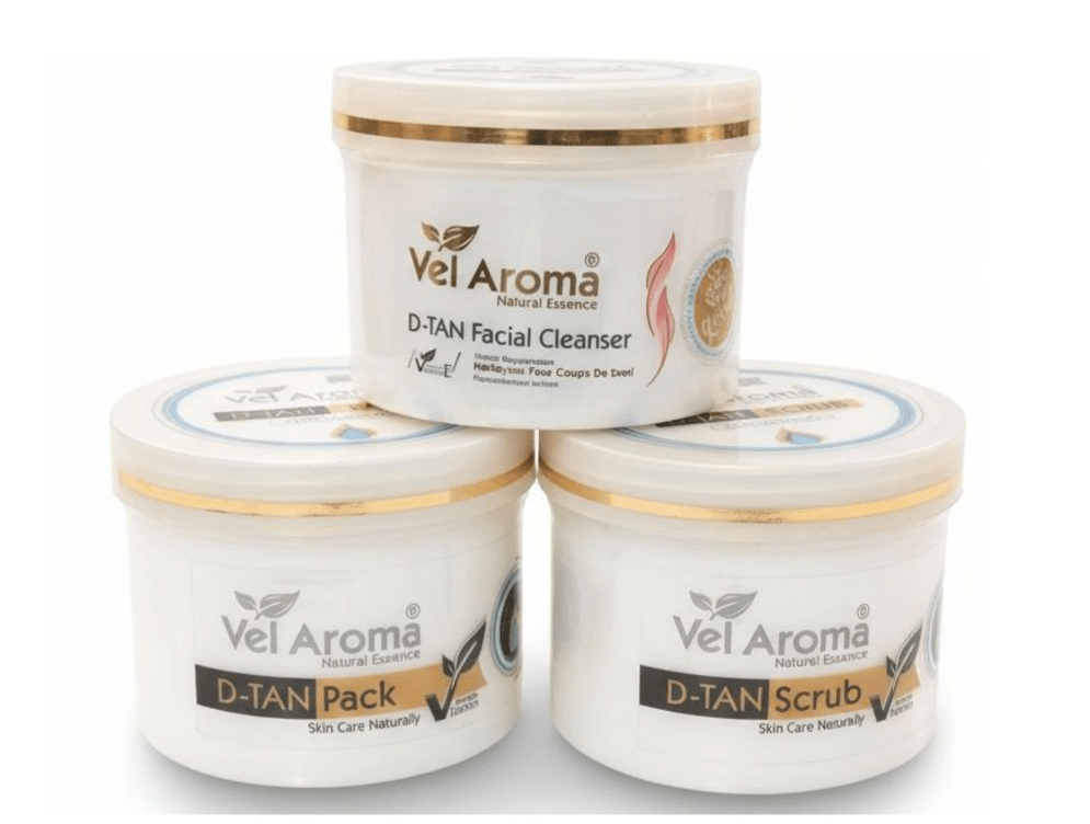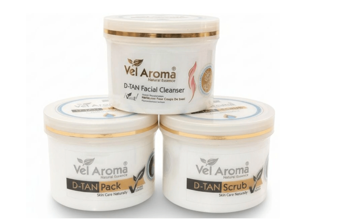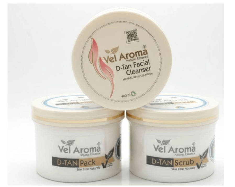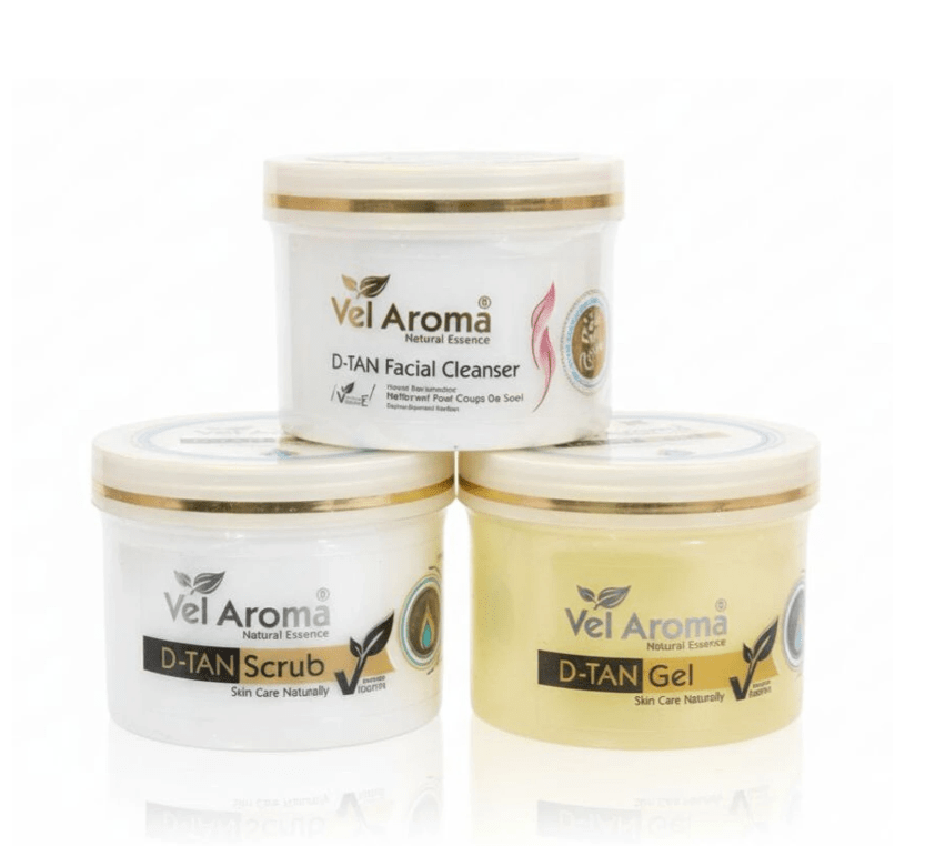 The cleanser deeply cleans pores and removes excess oil. The scrub gently exfoliates dead skin cells, helping to unclog pores and smoothen skin texture. The D-tan pack works effectively to reduce tanning, brighten skin tone, and give an instant glow.