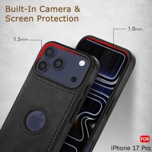 The Genuine Leather Finish Back Cover Case for the iPhone 17 Pro (Black) is a professional-grade accessory designed for Apple’s 2025 flagship. It is specifically engineered to accommodate the iPhone 17 Pro’s major design departure: the horizontal “Camera Plateau” and its new 8.8mm aluminum/glass unibody.