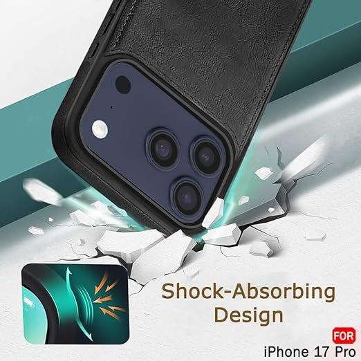 The Genuine Leather Finish Back Cover Case for the iPhone 17 Pro (Black) is a professional-grade accessory designed for Apple’s 2025 flagship. It is specifically engineered to accommodate the iPhone 17 Pro’s major design departure: the horizontal “Camera Plateau” and its new 8.8mm aluminum/glass unibody.
