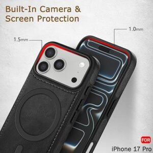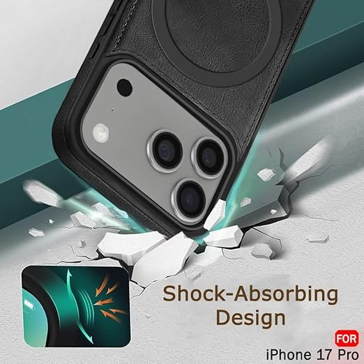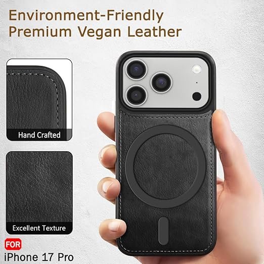 The Genuine Leather Finish Back Cover Case for the iPhone 17 Pro (Black) is a professional-grade accessory designed for Apple’s 2025 flagship. It is specifically engineered to accommodate the iPhone 17 Pro’s major design departure: the horizontal “Camera Plateau” and its new 8.8mm aluminum/glass unibody.