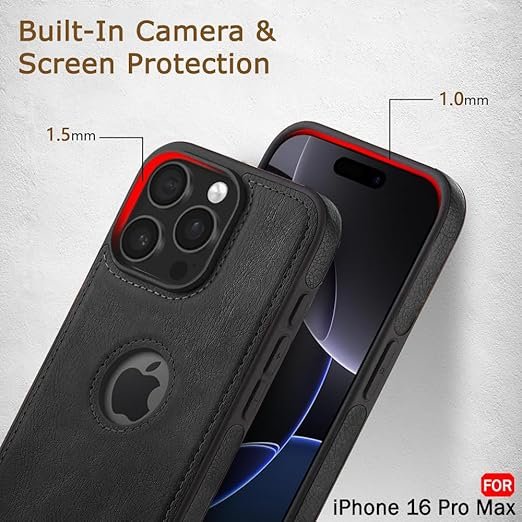 The Genuine Leather Finish Back Cover Case for iPhone 16 Pro Max in Black is the quintessential “executive” accessory. It is designed for those who want to soften the industrial titanium look of the Pro Max with a warm, classic aesthetic while maintaining a slim, non-bulky profile.