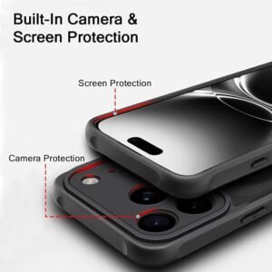 The Hybrid Matte Frosted Translucent Back Case for the iPhone 17 Pro (Frost Black) is a high-end protective solution designed for the 2025 flagship. It is specifically engineered to accommodate the iPhone 17 Pro’s new horizontal “Camera Plateau” and its 8.8mm titanium-aluminum unibody.