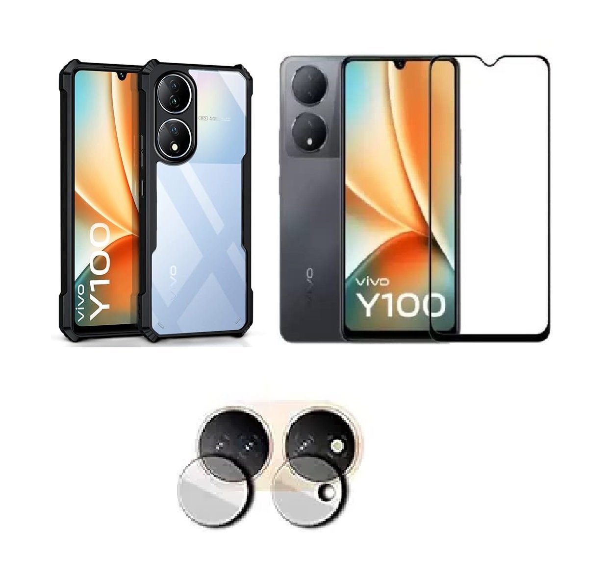 Protect your Vivo T2 5G or Vivo Y100 with this Eagle Design Back Case Cover Combo Pack. The slim yet durable back cover features enhanced 360° camera bump protection to safeguard your camera and phone from scratches and accidental drops. This 3-in-1 combo also includes a Tempered Glass screen protector and a Camera Lens Protector, ensuring full-body protection. Stylish, shock-resistant, and perfect for everyday use, this combo keeps your phone safe while maintaining its sleek look.