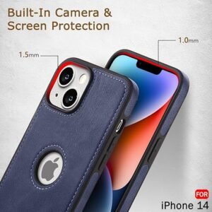 Inner Microfiber Lining: High-quality leather cases include a soft interior lining (microfiber or similar) to prevent scratches and abrasions on the glass back of the iPhone 14.