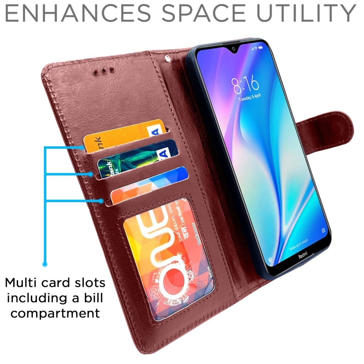 Mi Redmi 8A Dual Flip Case Leather Finish | Inside TPU with Card Pockets | Wallet Stand and Shock Proof | Magnetic Closing | Complete Protection Flip Cover for Mi Redmi 8A Dual (Brown)
