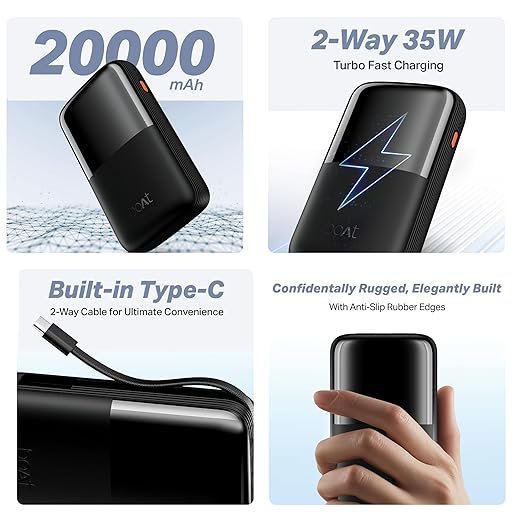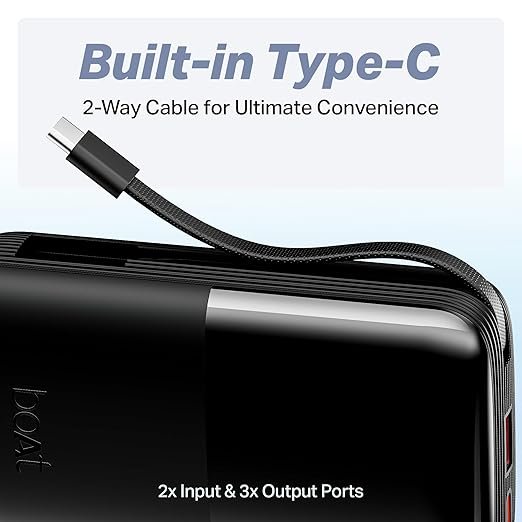 Built-in Type-C Cable: A major convenience feature—the attached 2-way Type-C cable eliminates the need to carry an extra charging cable.