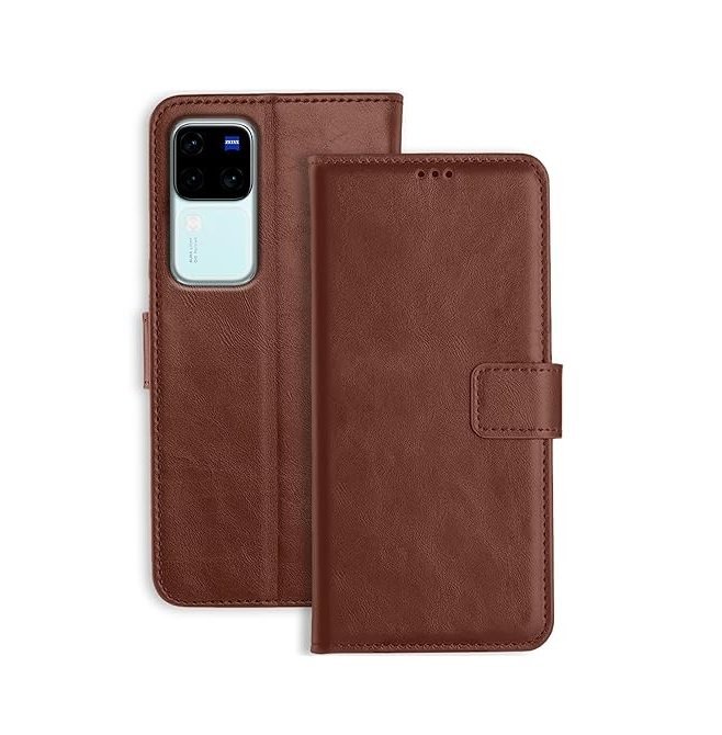 Professional, Classic Look: The brown color and “Flip” design usually utilize PU Leather (or genuine leather), giving the premium Vivo V30 Pro 5G a timeless, business-like appearance.