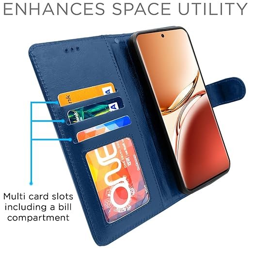 Invest in your brand new Oppo F27 Pro Plus 5G device’s protection today through this fit to use executive Blue leather stand wallet case flip cover and save yourself from the heartbreak and agony of watching the scratches and damages on your device multiply periodically. This sleek executive flip cover case is designed to a perfect fit on your mobile and smooth surface further adds to its polished looks. This pouch comes with inner shell back cover that does not break easily and aids in shock absorption during impacts. This wallet case comes with card slots to store receipts, cards or emergency cash. You can now video chat or watch movies hands free in landscape mode with the wallet stand. Perfect and precise cutouts allow easy access to all ports.