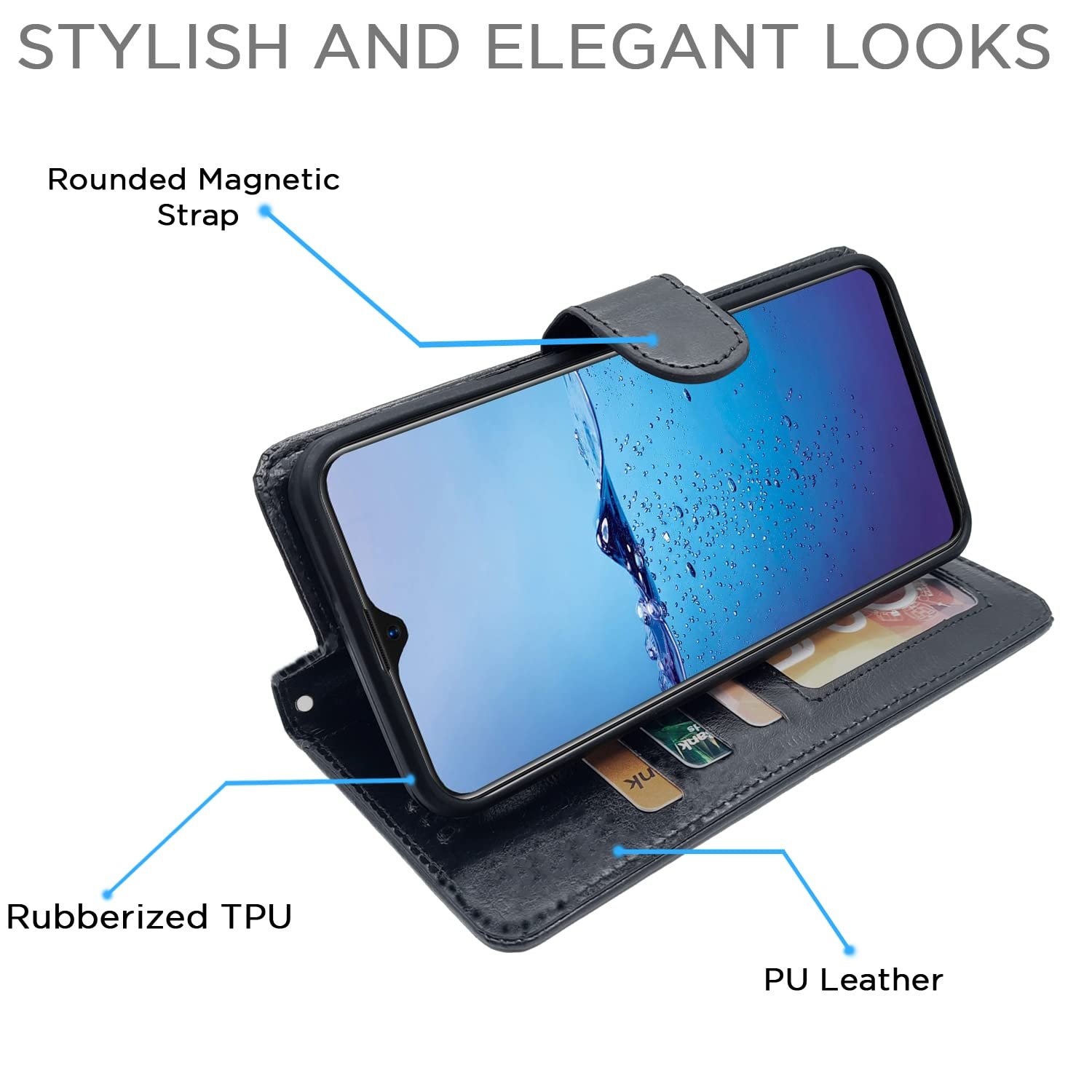 Oppo Realme 2/2 Pro/Realme U1 Flip Cover Magnetic Leather Wallet Case Shockproof TPU for Realme 2/2 Pro/Realme U1 (Black)