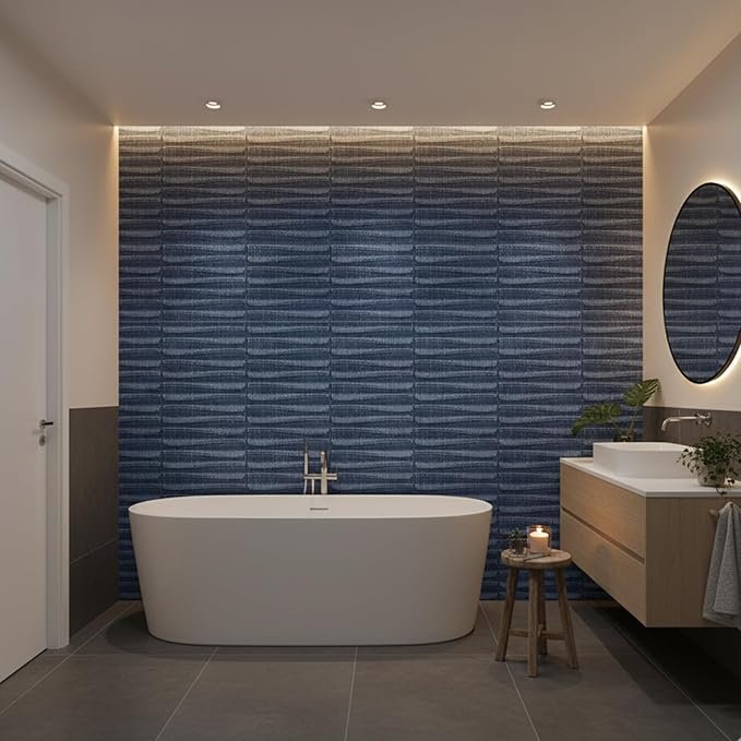 The Dune Electric Blue 3D PVC Panel is a premium architectural solution designed for those who want a bold, high-luxury focal point. Unlike the bronze or walnut versions, the Blue finish is vibrant and regal, making it a favorite for “statement walls” in luxury homes, salons, and upscale boutiques.