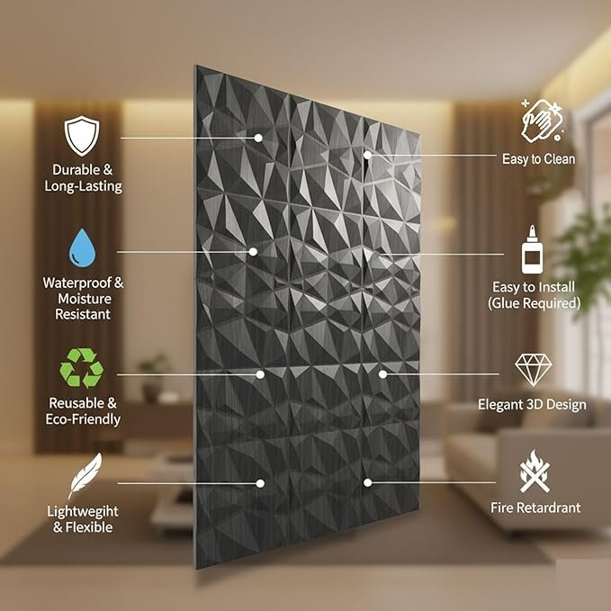 Dynamic Lighting: The faceted diamond surfaces are specifically designed to catch light from different angles, making the wall “shift” as you move through the room.