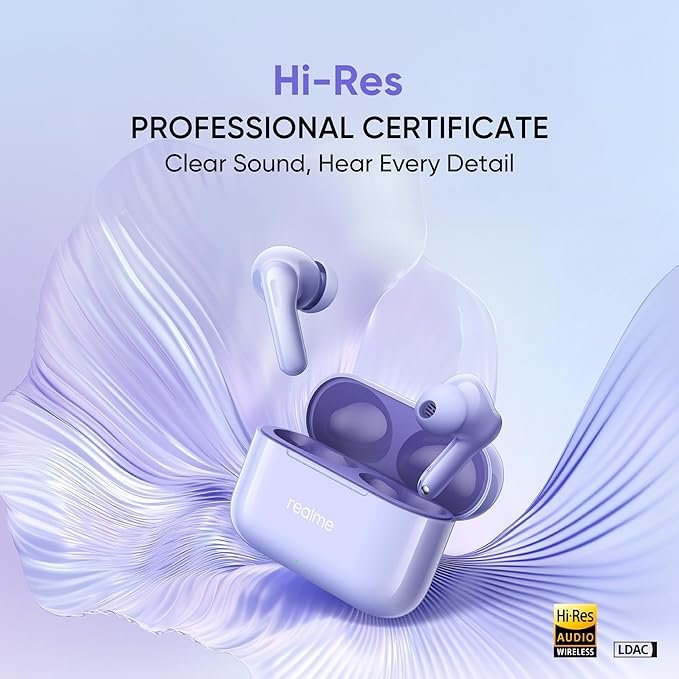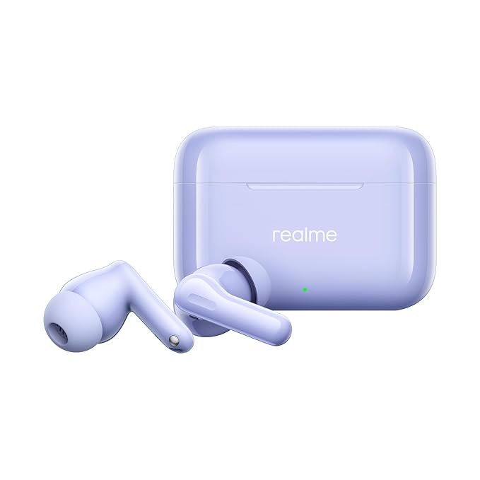 realme Buds T200 True Wireless Earbuds with Hi-Res Audio, 12.4mm Dynamic Bass Drivers, 32 dB ANC, Quad Mic, 45ms Latency, Upto 50 Hrs Playback, Fast Charge, IP55 Rated, BT 5.4 (Dreamy Purple)