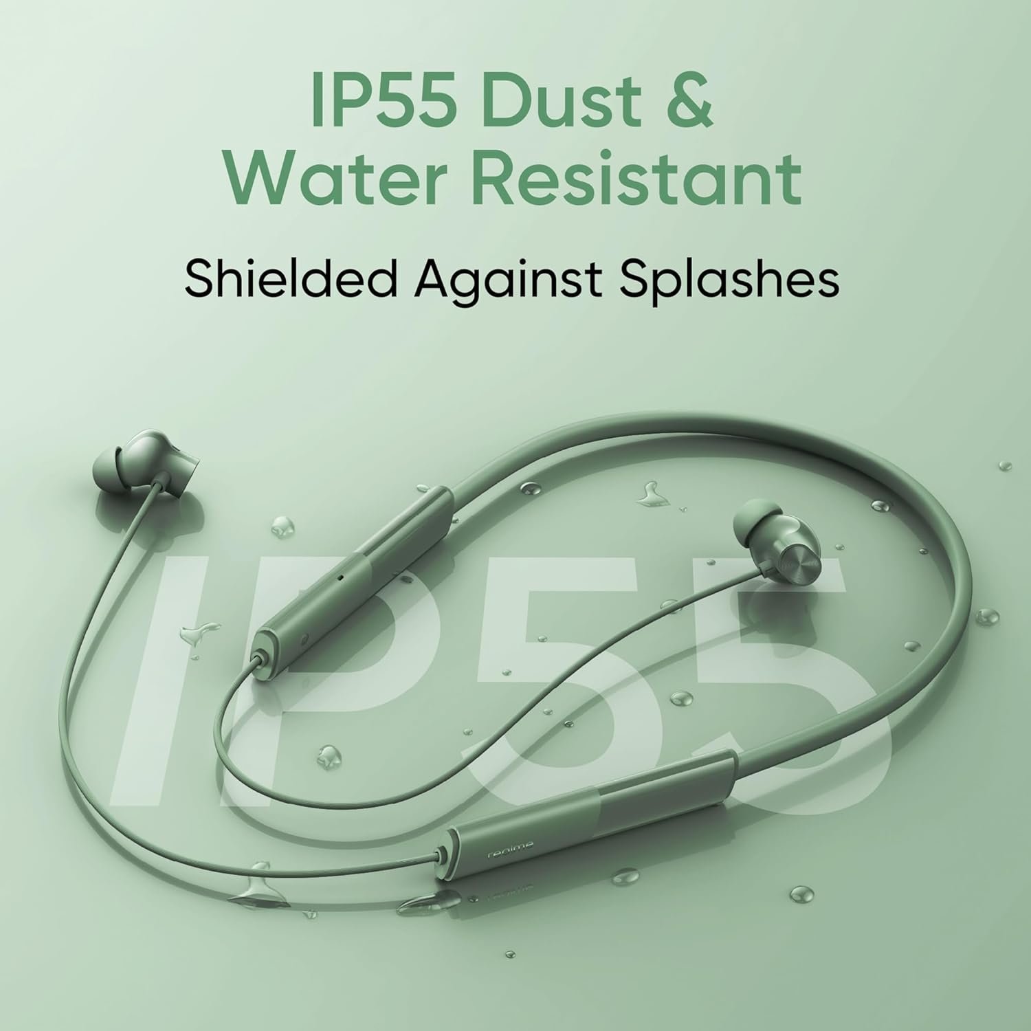 The realme Buds Wireless 3 Neo in Green is a feature-packed neckband designed for bass lovers and gamers. It balances a large audio driver with long-lasting battery life and modern connectivity standards.