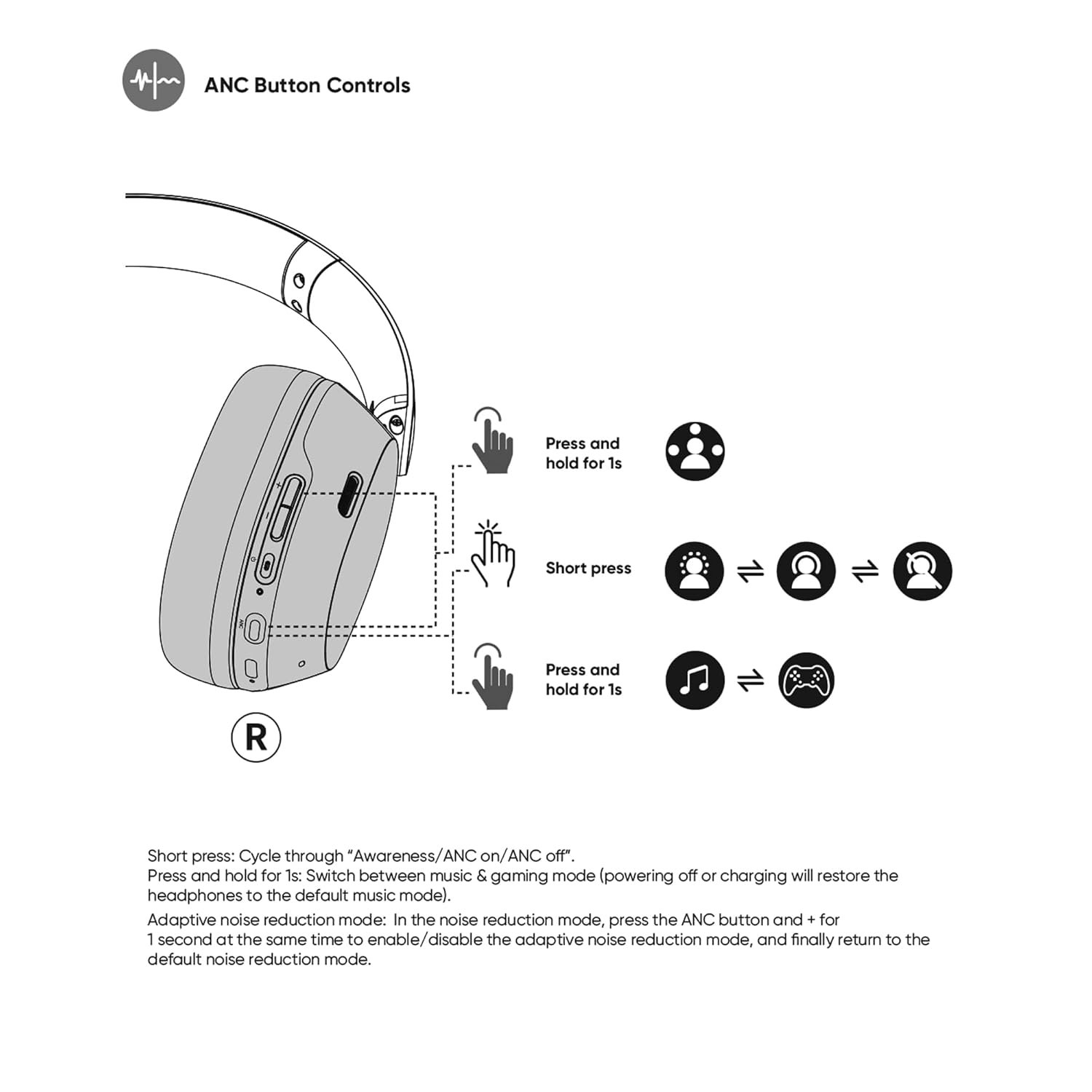 Awareness Mode: Allows you to hear your surroundings and have conversations without removing the headphones.