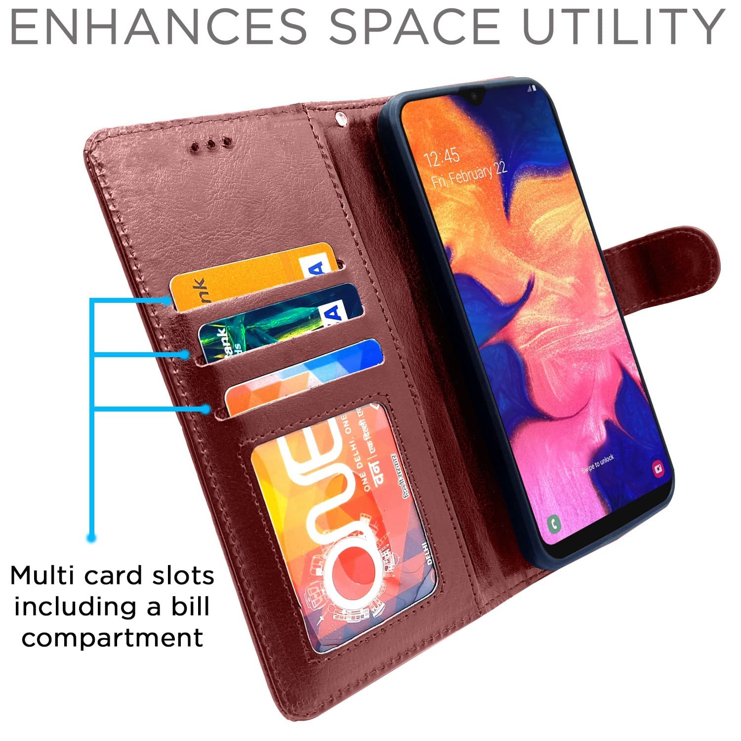Samsung Galaxy A10 Flip Case Leather Finish | Inside TPU with Card Pockets | Wallet Stand and Shock Proof | Magnetic Closing | Complete Protection Flip Cover for Samsung Galaxy A10 (Brown)