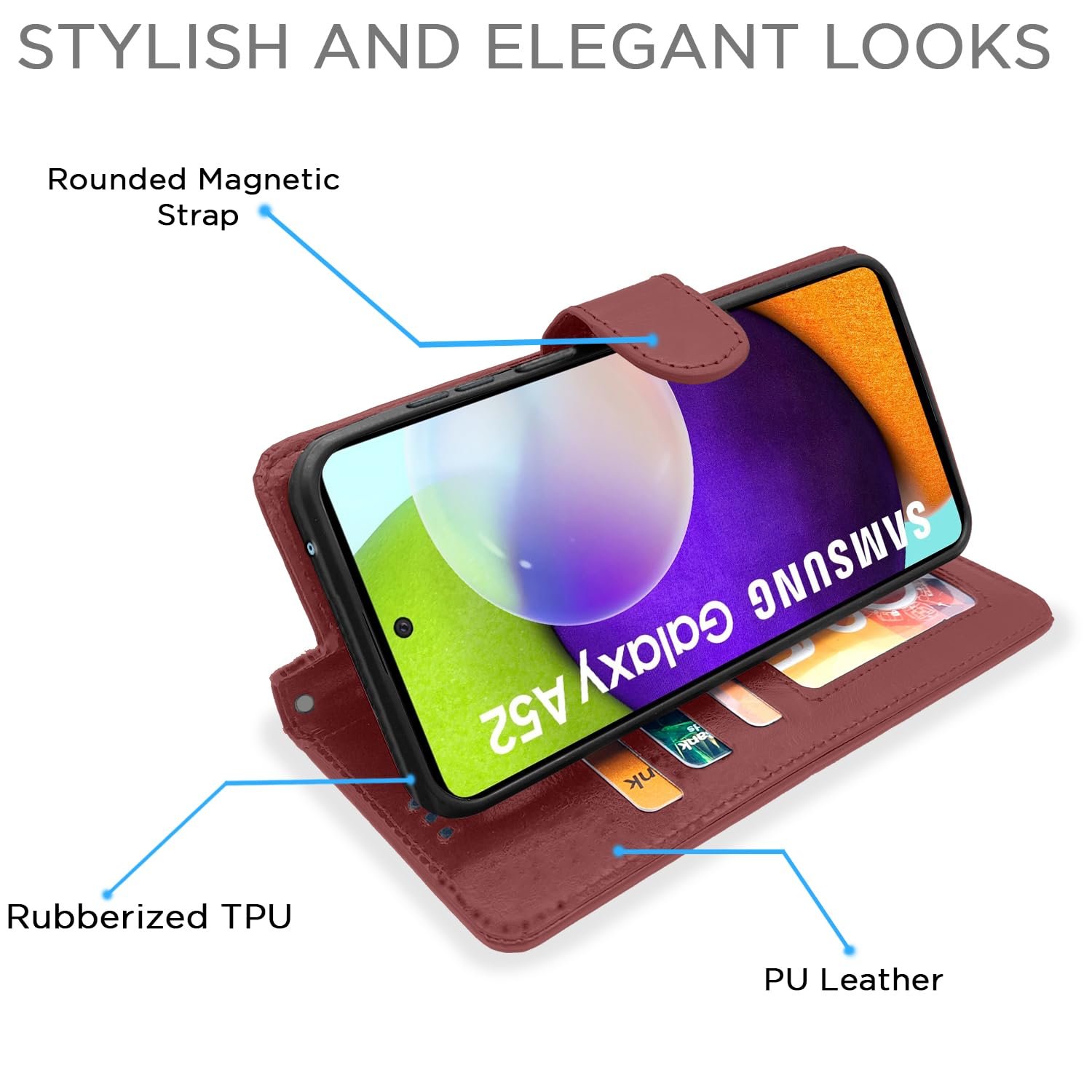 Samsung Galaxy A52 Vintage Flip Cover Leather Wallet Case & Cover Shockproof TPU for Samsung Galaxy A52 (Brown)