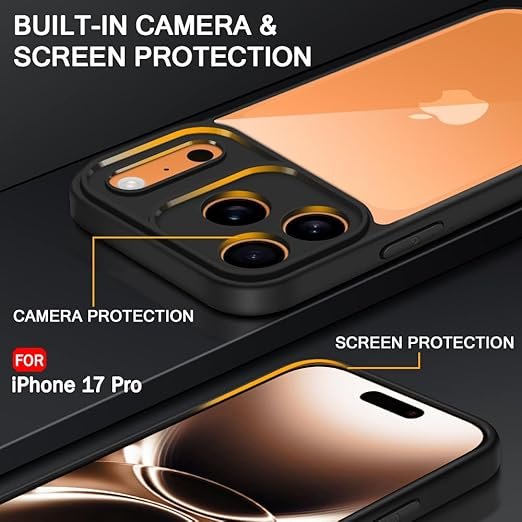 The Ultra-Hybrid Shockproof Sleek Armor Back Cover for the iPhone 17 Pro (Transparent Back with Black Sides) is a high-performance case designed for Apple’s 2025 flagship. It specifically addresses the needs of the redesigned iPhone 17 Pro, which features a new unibody aluminum frame and a horizontal “camera plateau.“