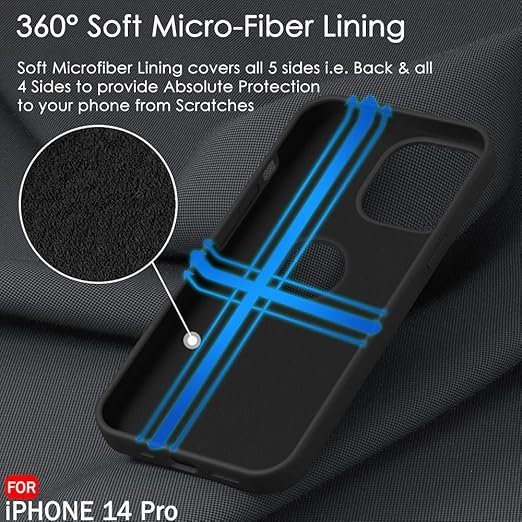 The Genuine Liquid Silicone Back Cover Case for the iPhone 14 Pro, especially with the added features of a Logo Hole and Micro-Fibre Lining, focuses on merging a premium tactile experience with comprehensive scratch and shock protection.
