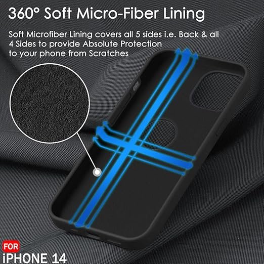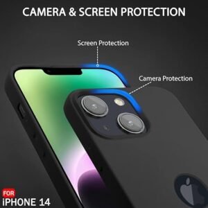 Silicone Back Cover Case for iPhone 14 | Soft Micro-Fibre Lining Inside | Camera Protection Bump | Shockproof Back Cover (Silicone, Black)- Logo