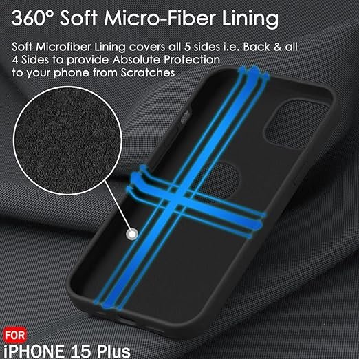 Soft Micro-Fibre Lining: The interior is lined with high-grade microfiber to prevent micro-abrasions and scratches on the iPhone 15 Plus’s glass back caused by trapped dust or grit.