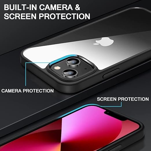Raised Edges for Camera Protection: Features a specifically designed, raised module or bezel around the iPhone 13’s cameras to prevent the lenses from making direct contact with flat surfaces.