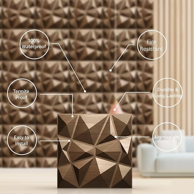Dynamic Lighting: The faceted diamond surfaces are specifically designed to catch light from different angles, making the wall “shift” as you move through the room.
